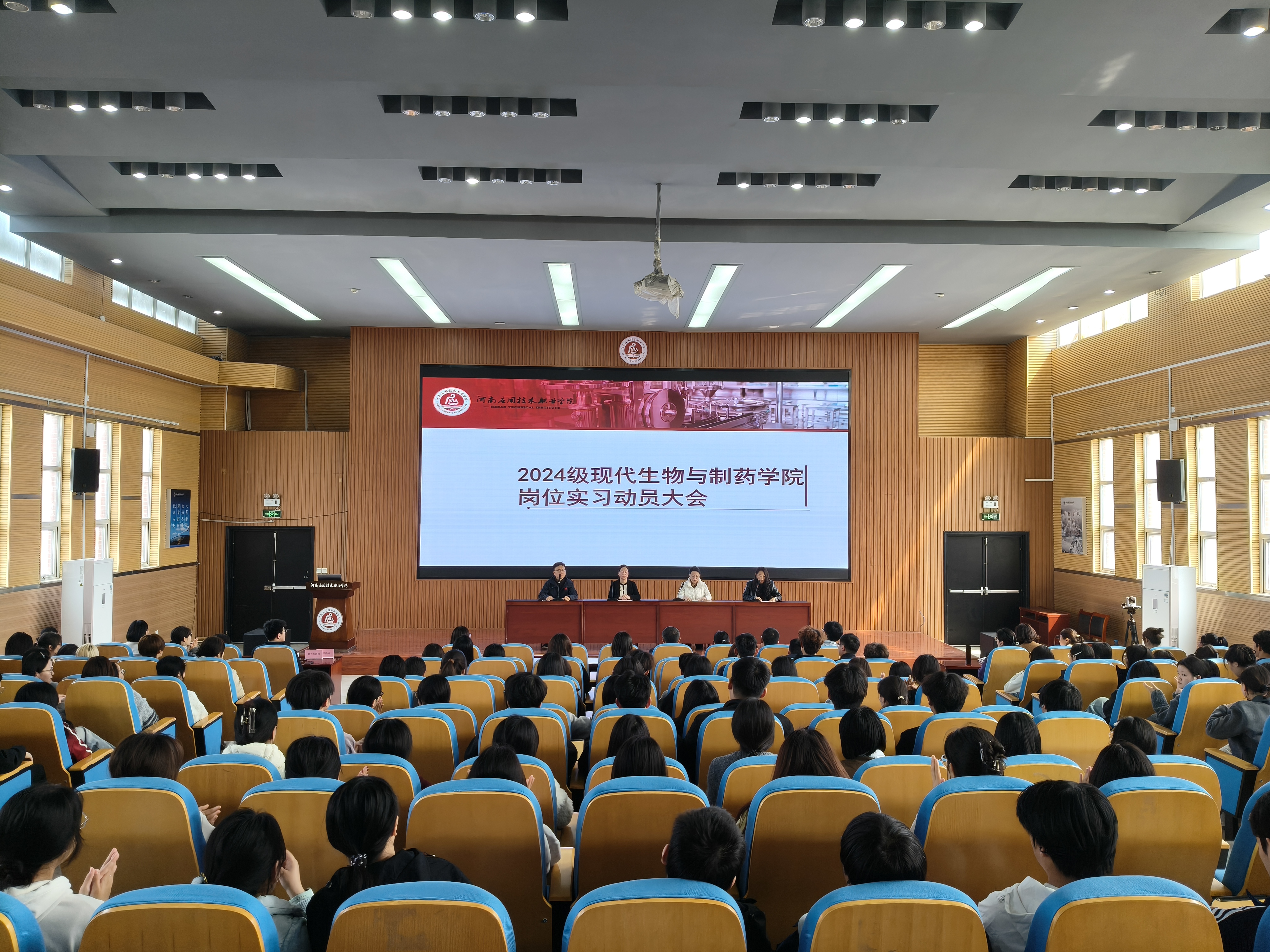 3月24日下午,现代生物与制药学院在五楼报告厅召开2024级学生岗位实习动员大会。学院党总支书记梁艳、院长王湘妍、党总支副书记王俊永出席会议,2024 级实习指导教师、辅导员及学生代表参加会议,会议由副院长高莉丽主持。本次会议紧扣主题,旨在保障岗位实习工作有序开展,助力学生以积极心态迎接实习,顺利实现从“学校人”到“职业人”的转变。