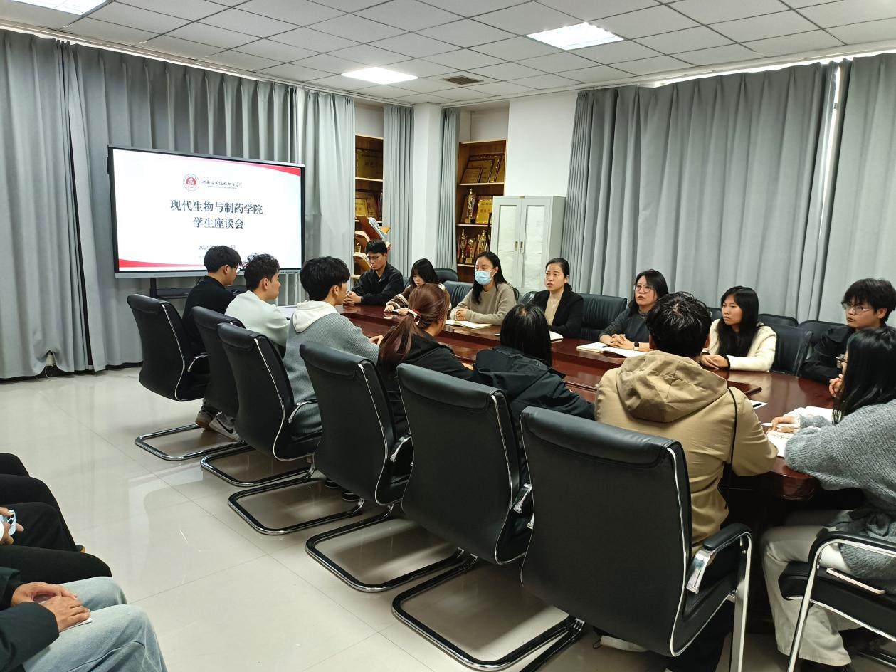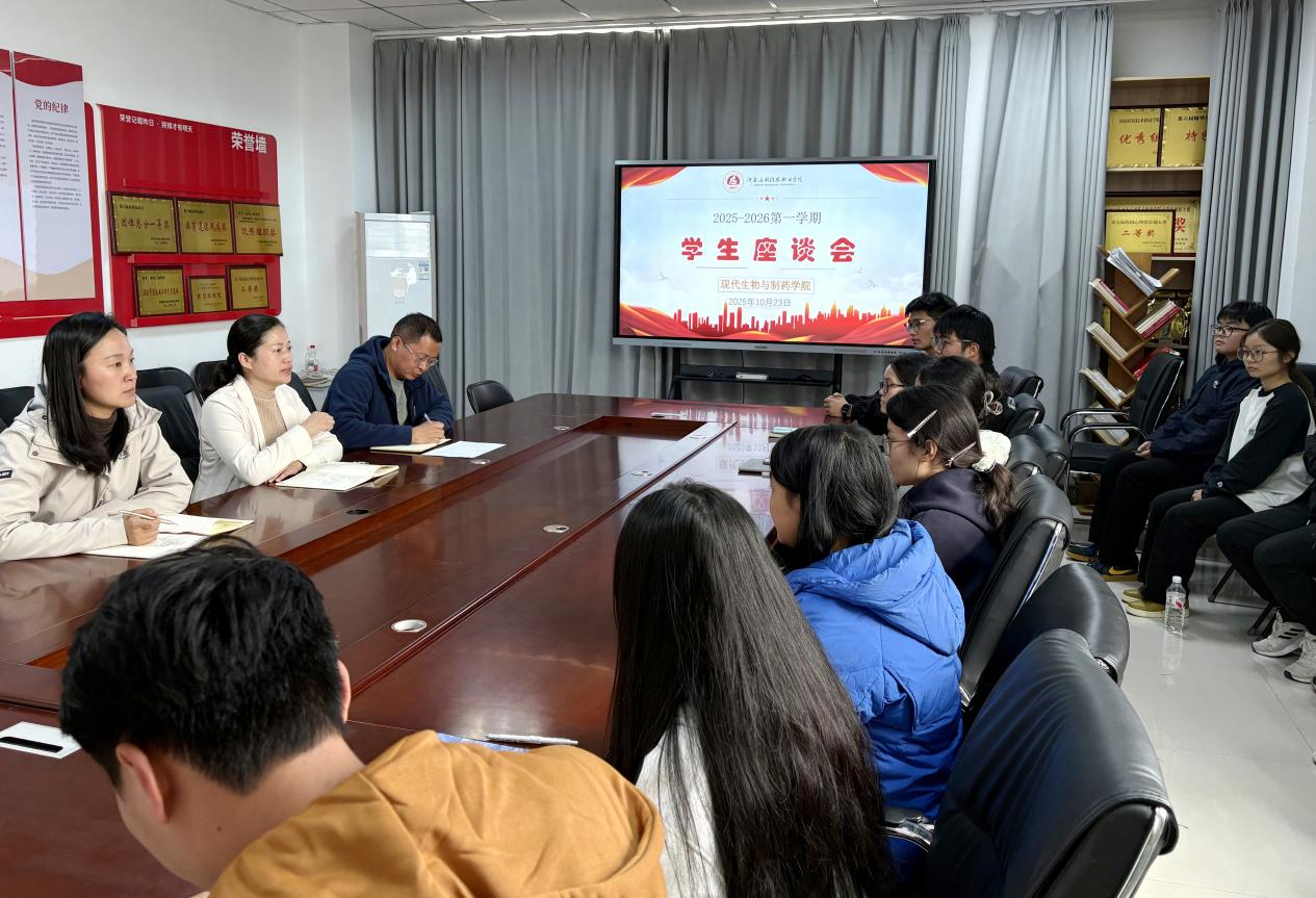 为进一步搭建学院与学生之间直接、有效的沟通平台,精准把握学生学习、生活现状,2025年10月23日、10月27日,现代生物与制药学院召开学生座谈会。党总支书记梁艳、院长王湘妍出席会议,学院各年级学生代表共计65人参会。会议由团总支书记曹璐主持。