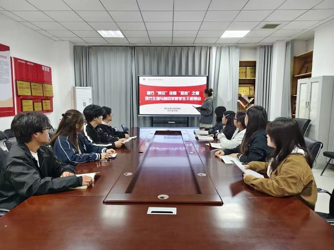为进一步增强团队协作意识与自我管理能力,确保各项工作有序推进,2025年10月27日,现代生物与制药学院在办公楼301室召开学生会干部例会。学院学生会主席团及24级各部门负责人参加会议,会议由学生会主席团成员李欢欢主持。