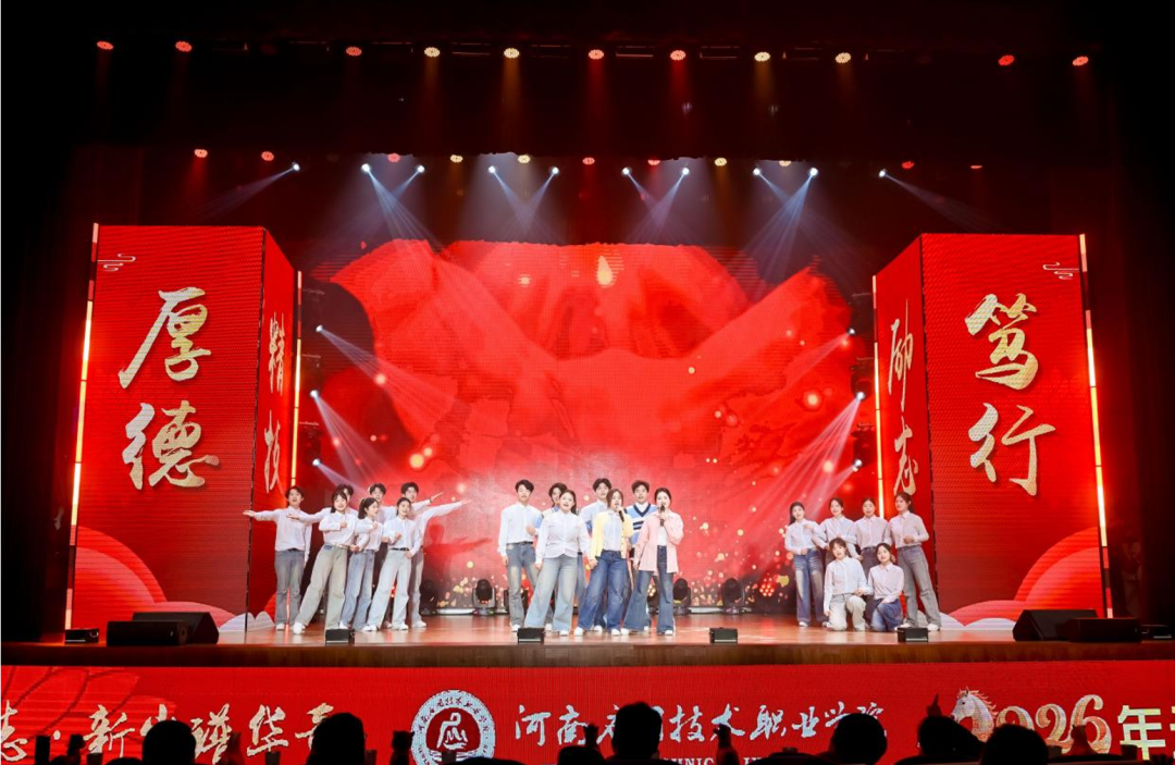 12月30日,学校在大礼堂举办以“青衿怀壮志 新岁谱华章”为主题的元旦文艺汇演。现代生物与制药学院将专业符号转化为情感语言,以音乐剧《我爱你,中国》的艺术形式,生动诠释了新时代青年“科技报国、健康中国”的使命担当。