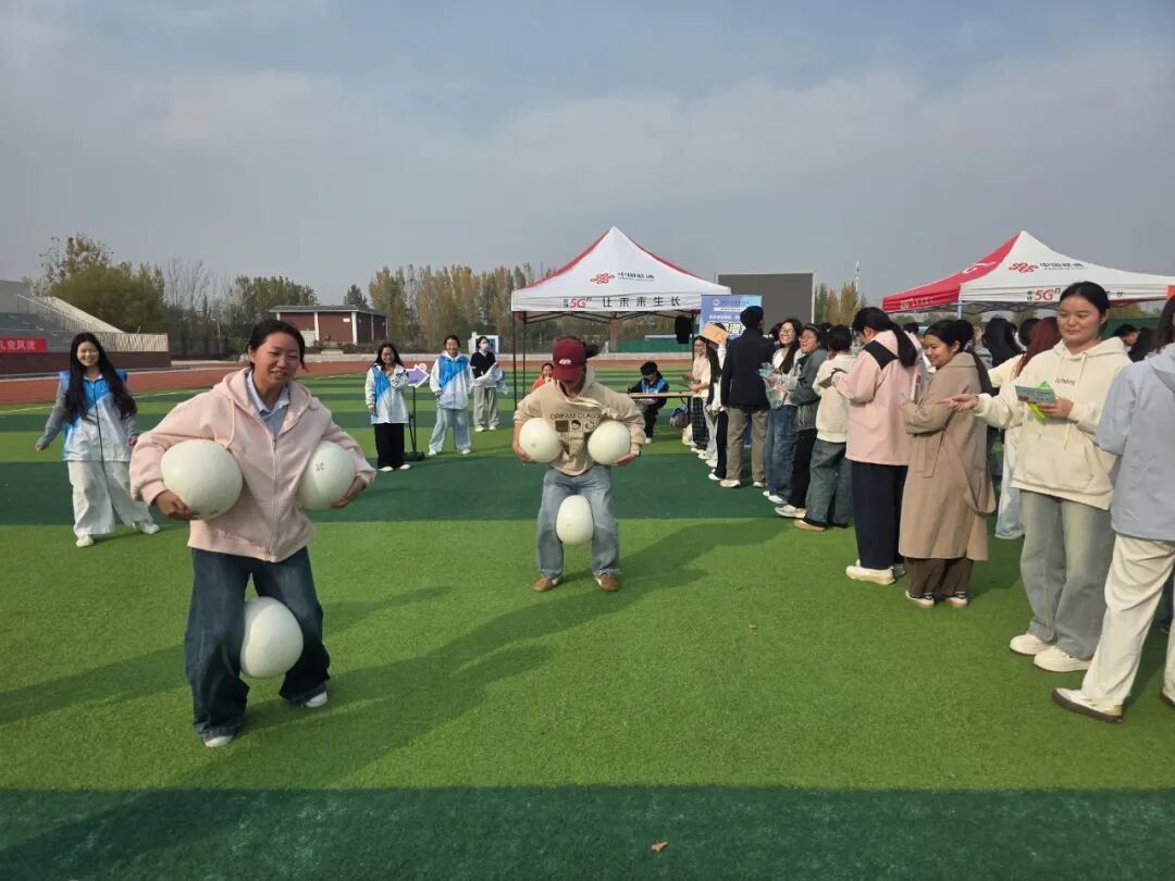 活动前,志愿者们提前备好瑜伽球等道具,向到场学生清晰讲解“企鹅漫步”的游戏规则。现场氛围热烈融洽,同学们热情高涨。大家模仿企鹅摇摆前行,既要专注把控身体平衡,又要奋力冲刺完成赛程,在奔跑与协作中尽情释放学业压力,欢声笑语不断。单人挑战时的全神贯注、团队接力时的默契配合与相互鼓励,充分展现了学子们积极向上、团结协作的精神风貌。