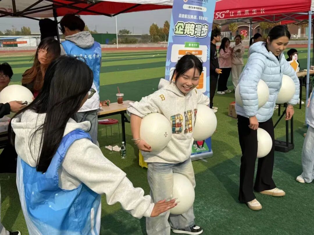 为帮助学生在紧张学业中释放压力,营造积极健康的校园心理氛围,2025年11月4日,现代生物与制药学院精心筹备的“企鹅漫步”趣味游戏亮相学校心理游园会,吸引全校学生踊跃参与。