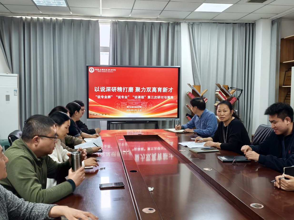 4月14日下午,现代生物与制药学院在301会议室召开业务学习会议,会议由副院长高莉丽主持,全体教师参会。本次学习围绕教学评估准备、“三说”演练、职业教育文件研读及国家安全教育普法宣传四项内容,开展工作部署与集中学习,旨在以评估要求为标尺、以业务本领为根基、以法治观念为保障,推动学院教育教学工作提质增效。