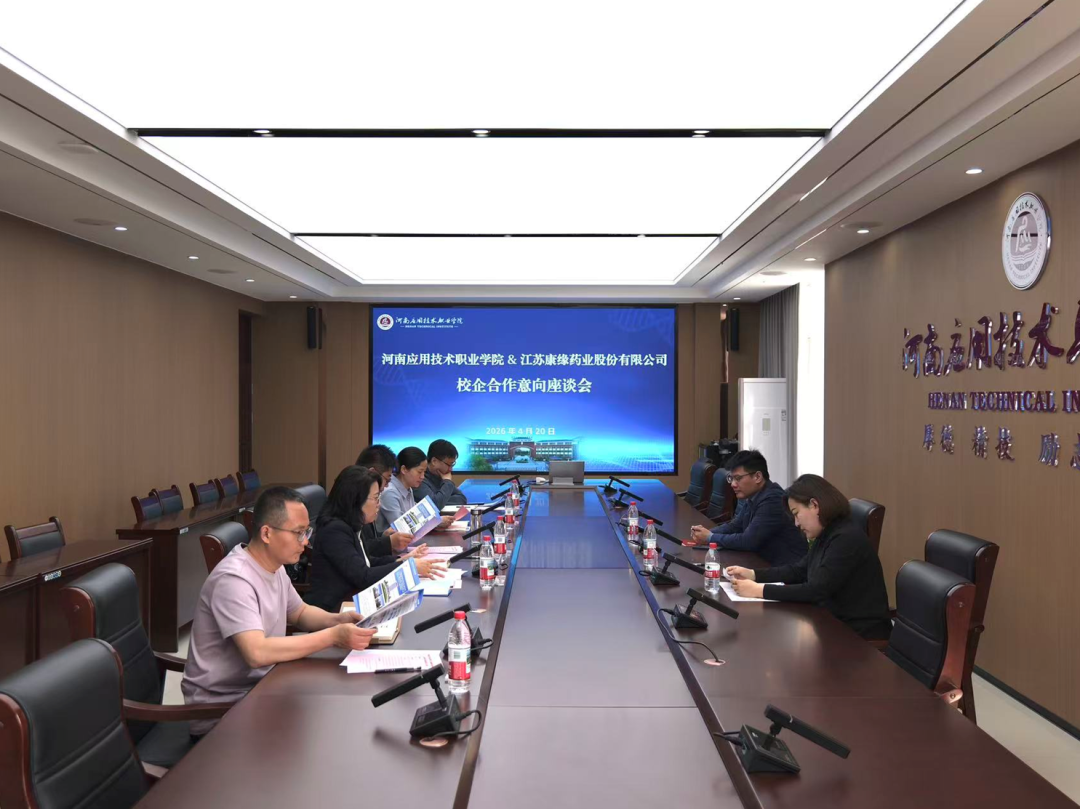 4月20日下午,现代生物与制药学院与江苏康缘药业股份有限公司校企合作意向座谈会在开封校区南院四楼第一会议室举行。康缘药业营销人力资源部经理王亮绪、营销人力资源部主管孙琳,招生就业与校企合作处处长张二月、现代生物与制药学院领导班子及教师代表共同参会。会议由学院党总支书记梁艳主持。